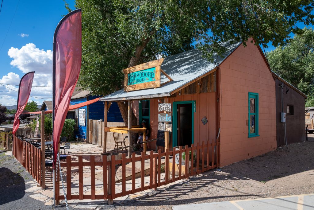 Seligman is known as the birthplace of Route 66 and, along the Route as it runs through this small place, the diners and memorabilia stores shout its status in kitsch signs and décor. There is not a lot else there and certainly nowhere to eat our Whole Foods picnic except, as we discovered, the shaded bench outside the Justice Court. Afterwards we found ourselves some more shade on the open veranda of the Commodore Coffee House. This is one of the more unusual coffee stops on our meanderings in the region – housed in a one room wooden shack, it seemed to be run in a delightfully haphazard way by local folk for local folk as well as passers-through like us. It was mercifully free of Route 66 paraphernalia and felt like a throwback to the hippie era, bar the up-to-date way with preparing the teas and coffees.