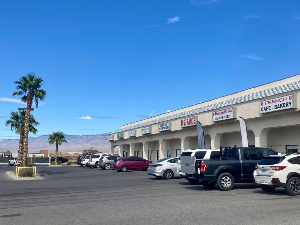 Having selected our replacement car at the airport, we are soon back in the open, dry Basin and Range landscape and coffee time is taken in the wonderfully-named Pahrump, a larger town laid along a highway. Having Google Mapped ‘coffee’ we have happened upon a small mall of slightly unprepossessing shops and businesses to visit O Happy Bread (https://ohappybread.com) because it seemed convenient. We enter expecting the usual coffee shop, despite the Boulangerie-Patisserie sign on the front, only to find bread and pastries displayed that could have come straight out of a Parisian equivalent. There is also a sign on the counter that reads: