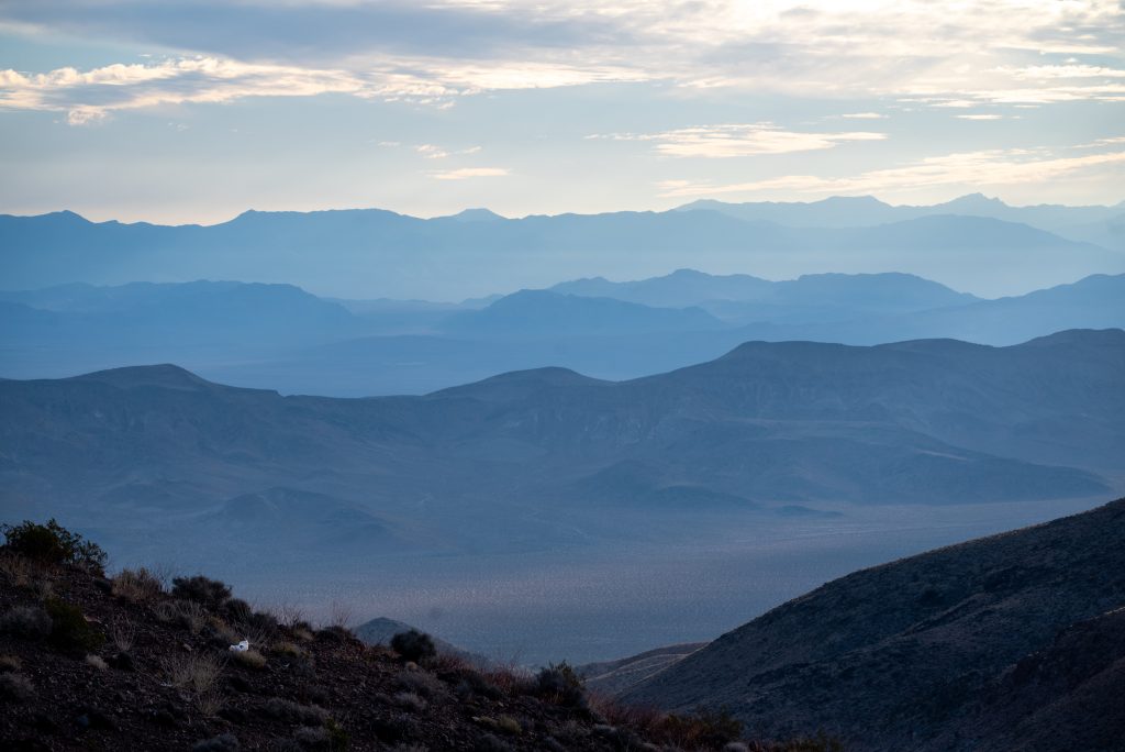 Although we are in one of the driest places on earth, we happened to arrive only a few days after a rainstorm. The result of this, in such a dry landscape, is that large quantities of rock, sand and mud are swept off slopes into the valley by the run-off water. Two consequences arise. One is that temporary pools can add to the beauty of the scene from somewhere like Dante’s Peak. The converse is that many roads are temporarily blocked and you may not be able to access certain parts of the Park at all. The Park website usually has alerts that explain where sights and roads are closed.