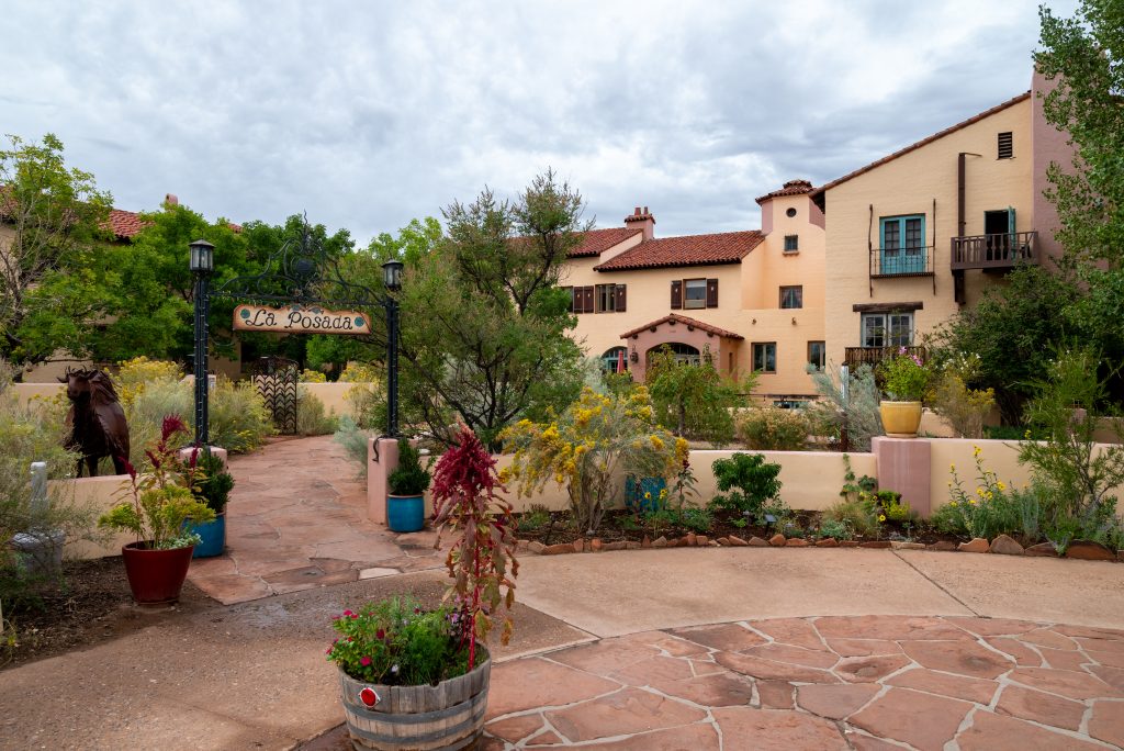 Built as a railway hotel in the 1920s, it became the railway company’s offices and then their storage space before being restored in the late 1990s as this wonderful, quirky place that remains redolent of the era of the 1930s whilst having been fully updated. It was built as part of the Fred Harvey Company’s empire, founded in 1876 to provide up-market service facilities for the railroad – dining cars, restaurants, hotels. I had never heard of this company, which worked with the railways to bring tourism to the American south-west, yet it seems to have had an almost iconic status. There were the renowned waitresses known as Harvey Girls (Judy Garland played one in the 1946 film of that name). There were striking individual hotels, many the work of their chief architect for 38 years from 1910, the extraordinary Mary Colter. Those designs included the one she regarded as her masterpiece – La Posada. The hotel website covers some of this history and its restoration with a comprehensive self-guiding tour (https://irp.cdn-website.com/c227ebcc/files/uploaded/LaPosada_Booklet_2013_Cropped.pdf).