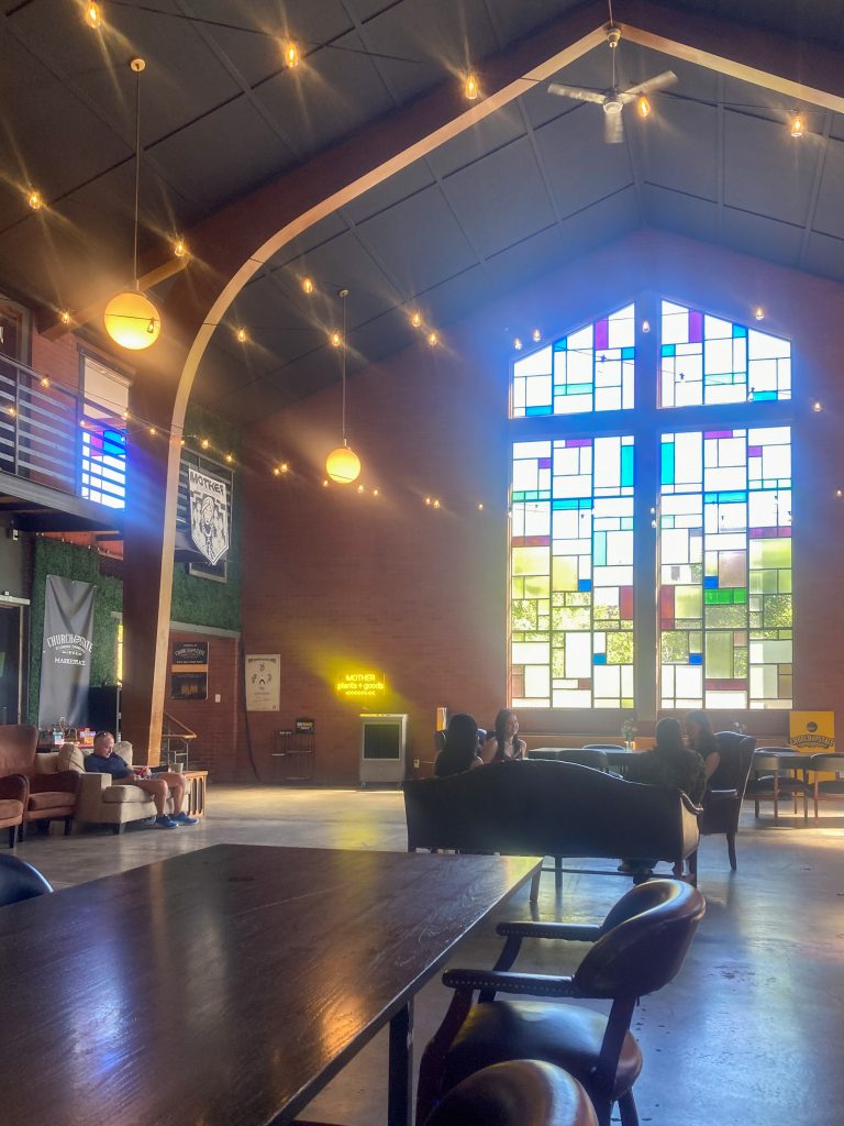 Handily placed opposite the City Library this entertaining and good café is just a large booth within the nave of a former church, sharing space with a tattoo parlour and a few other slightly alternative businesses (https://www.hallowedgrounds.rip). The nave is now occupied by long tables with chairs for the denizens of the building who, in addition to me, included several of the laptop and one latte brigade. A peaceful space, if you just want some down time and caffeine.