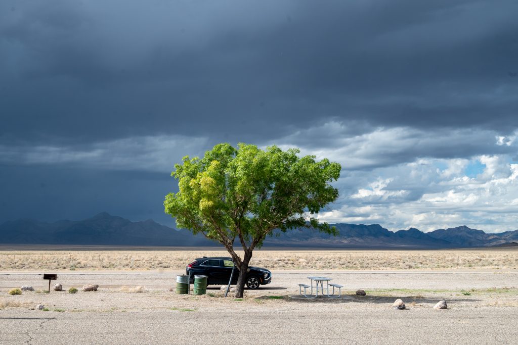 A point to note about driving in this part of the United States: the rainstorms. The summer ‘monsoon’ storms appear as looming thunderclouds over the mountains and, as the lightning seeks out the ground, you can see them bearing down on you as you roll along. Then the bright sunshine suddenly gives way to a near impenetrable silvery darkness. Rain sheets down. With windshield wipers struggling to cope, visibility is reduced to a couple of hundred metres. Traffic slows as surface water builds up, tugging at your tyres. Ten minutes later, the storm has passed and your previous world returns.
