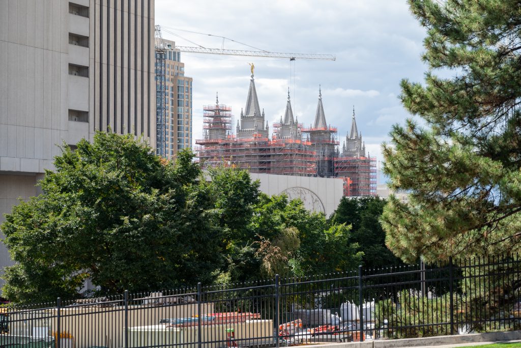 The LDS Church dominates this central area of the city. In Temple Square itself are the Temple itself, The Tabernacle and the huge skyscraper of the Church Office Building. The surrounding blocks house more Church offices, a History Library, a monstrous modern conference centre (occupying a whole block), the Church History Museum, The Family Search Center and, dwarfed by all nearby, the pocket-sized Brigham Young Historic Park. Unfortunately substantial parts of Temple Square were a fenced-off building site as a major refurbishment of the Temple itself is being undertaken over many years. The Temple is hidden from view behind scaffolds and tower cranes so, on a damp, grey showery day, we took in the History Museum, The Tabernacle and tried out the Family Search Center.