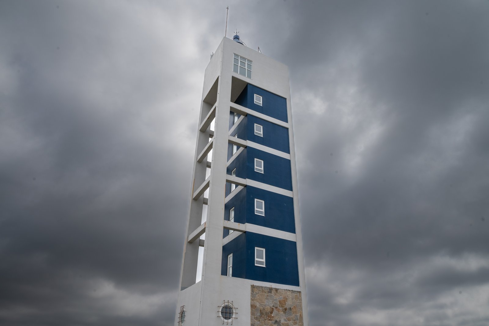 A drive north out of the city, that hugs the narrow coastal roads, takes in coastal scenery and architecture.  First stop is the eighteenth-century Castelo de San Felipe, one of the two forts that sit, like Scylla and Charybdis, guarding the narrow neck of the harbour of Ferrol.  We had failed to take account of the lengthy Spanish lunch break and the gates of the castle were firmly closed when we arrived so take careful note of the opening hours on the Ferrol tourist information website (https://visitferrol.com/castillo-de-san-felipe/?lang=en).  Nonetheless the striking location and the sloping stone jetty at the shoreline was a pleasing introduction to this coastline.  Here the coast is more indented, wooded and steeper-sided than further south, with small villages in tight sandy bays alternating with imposing rocky headlands.  Two of those headlands, jutting out at the junction of the Bay of Biscay with the Atlantic Ocean, sport two differing lighthouse structures.  Faro do Cabo Prior is a low single-storey structure atop which its lantern rises like small pimple, whereas Faro de Punta Frouxeira is an improbable avant-garde design which looks like a block of flats has escaped its urban location then gone on a crash diet – https://www.apfsc.com/en/port-of-ferrol/navigation-aids/punta-frouxeira/.  The more interesting element of a visit to Faro do Cabo Prior is the criss-cross of tunnels built into the rock beneath the lighthouse.  These concrete relics of batteries constructed in the 1920s (as part of the naval defences of Ferrol) are intriguing, if faintly spooky, places to explore.  The bastions at the end of each tunnel give onto dramatic views down onto the rocks at the end of Europe.  The almost empty sandy beaches that fold into the coast between the headlands provide a pleasing contrast.  With Faro de Punta Frouxeira only 20 kilometres (12 miles) north of Ferrol, the whole drive makes for a gentle half-day excursion.