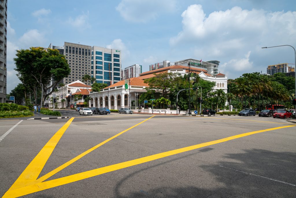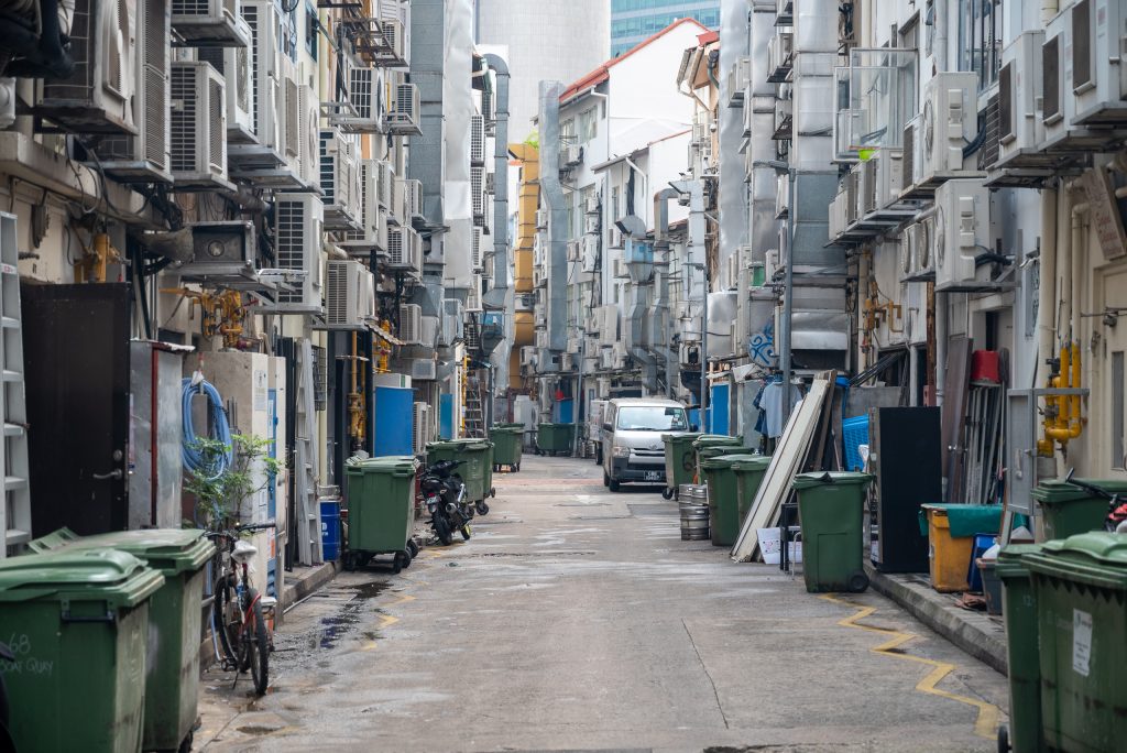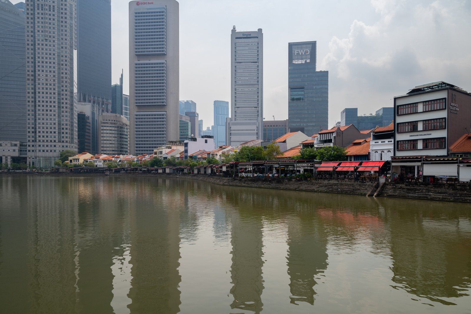 Here the bars and restaurants will cater for every drink or meal – Irish pub, American burgers, Japanese sushi, Mexican cocktails, Italian trattoria, Chinese seafood and many, many more. There is photographic interest for me on stumbling upon the back alley that runs parallel to the two public-facing streets of Boat Quay and Circular Quay. This is where the hostelries are serviced from. Here vans and bikes unload, cigarettes are smoked by resting staff, gas cylinders are stored, supplies are stuffed into little kitchens glimpsed through open doorways and, above street level, the walls are pockmarked with air-conditioning units. The road brings me out into the small green rectangle of Hong Lim Park with our hotel beyond. I dive into the air-conditioned space, hot and sweaty after a fascinating voyage through nineteenth century Singapore.