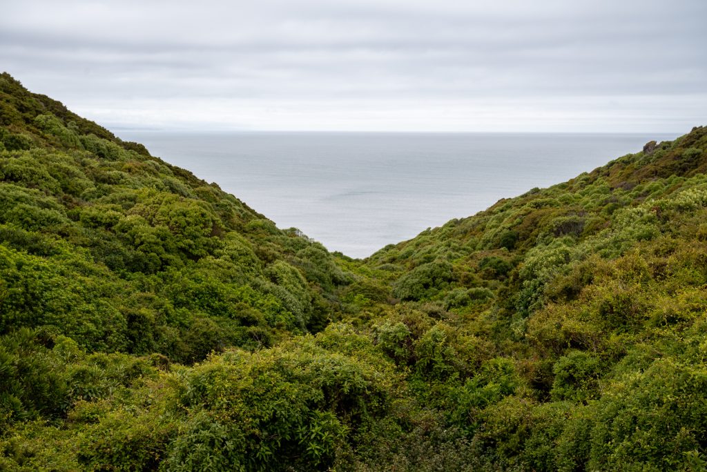With darkness we head off up the road. The darkness is and must remain complete, as smartphone torches would throw too much light to allow the glow worms to be seen. We trudge and stumble up about 400 metres when pearlescent spots start to emerge gradually, like stars, as your eyes adjust to the light. They seem to be deeper into the undergrowth here, never on the roadside surface of the bush, as if wanting to draw you into the forest. Our glow worm viewing satiated, we endeavour to lure the kiwis out of the forest with the Bluetooth speaker but before we can give any real time to this the rain returns and we stumble back down the darkened path to bed.