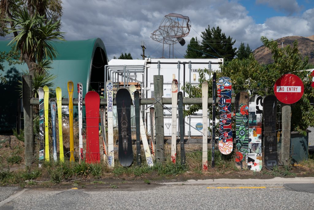 Wānaka is one of the fastest growing towns in the South Island, although its resident population is still under 15,000. It is a resort town, but this is no bucket-and-spade resort. It is the third town after Auckland and Wellington whose average property price exceeds 1 million NZ dollars. This is a well-heeled place, and it has a wide range of shops (we discover the joy of merino wool clothes) and eating places to match. The main part of town is a grid pattern of streets on the south shore facing the lake. There is a well-kept boardwalk and park that winds along the lakeshore and offers facilities galore: play areas, formal gardens, kayak and windsurf hire stalls, a marina and lake cruises. It also offers the spotting of the pūteketeke (great crested grebes) on their nesting platforms – another wildlife conservation project of the sort New Zealand does so much to favour (https://crux.org.nz/crux-news/wanaka-local-crowned-bird-of-the-century). Like so many New Zealand public spaces this lakeside gem is neat, well maintained and almost free of litter. On one side of this elegant area lies a slightly gravelly, sand beach to tempt bathers and water sports fiends and, on the other side, just to the west of the main part of town is the green expanse of Pembroke Park. Behind this flat area, the land and the town rise quite quickly to the level of the plateau where some shops and restaurants (and the golf course) are located.