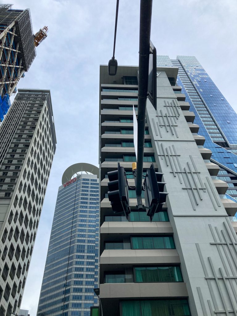 SO/ Auckland (https://so-hotels.com/en/auckland/) is part of a network of hotels, created in 2022 by the Accor group as a luxury brand. It was of a very modernistic design in a standard city skyscraper in the heart of the CBD, thus very convenient for the shopping we had planned. The ground floor reception area set the tone for the rest of the hotel which, perhaps unkindly, I thought smacked of a designer being let loose without a full eye on practicalities. It was a very dark area with a number of outré sculptural artworks. One was a vast chandelier, set in such a way that it was almost touching the floor, that felt like it had the potential to do physical damage to an unwary passing guest. Two black sofas provide one seat each – because they are set on end rather than on their base. The overdone design motif, of dark marble and gold flourishes, extended to the rooms (we sampled two), which had all the amenities you would expect from a top-end city hotel but seemed so cluttered that a visit to the loo in the night became a minor obstacle course.
